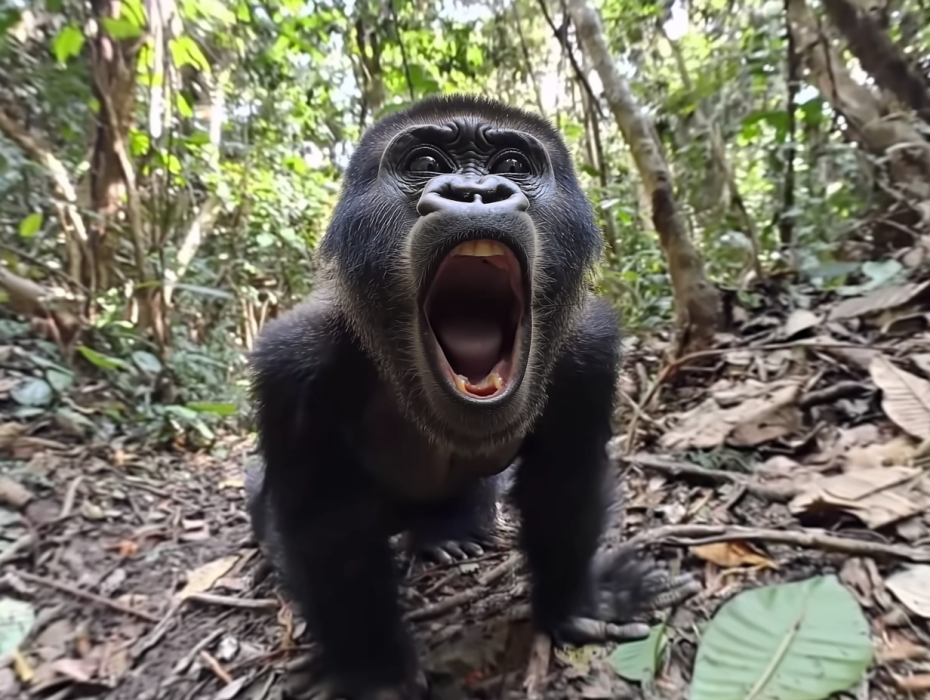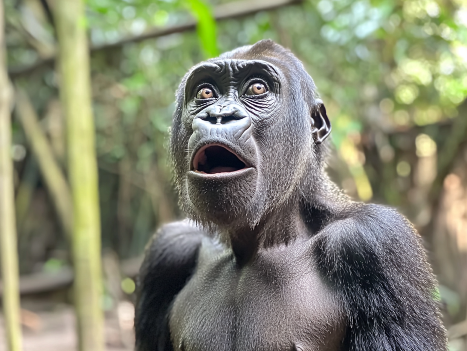 用心深く、ポールは予想外の存在に顔を向けた。巨大なメスゴリラと対面していることに気づき、ポールは衝撃で目を見開いた。一瞬、息が苦しくなった。浅い呼吸を繰り返しながら、事態の深刻さを痛感し、自分の選択肢を見極めた。