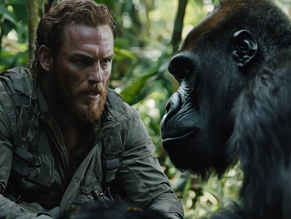 ゴリラはゆっくりと動き、巨大な手を彼に向かって伸ばした。ポールは緊張し、攻撃的な態度に出るかと思った。しかしその代わりに、彼女の手は彼の肩に軽く置かれた。その優しい重みにポールは唖然とした。彼女の深く据わった目が彼の目をとらえ、その中に奇妙な感情が揺らめいた。