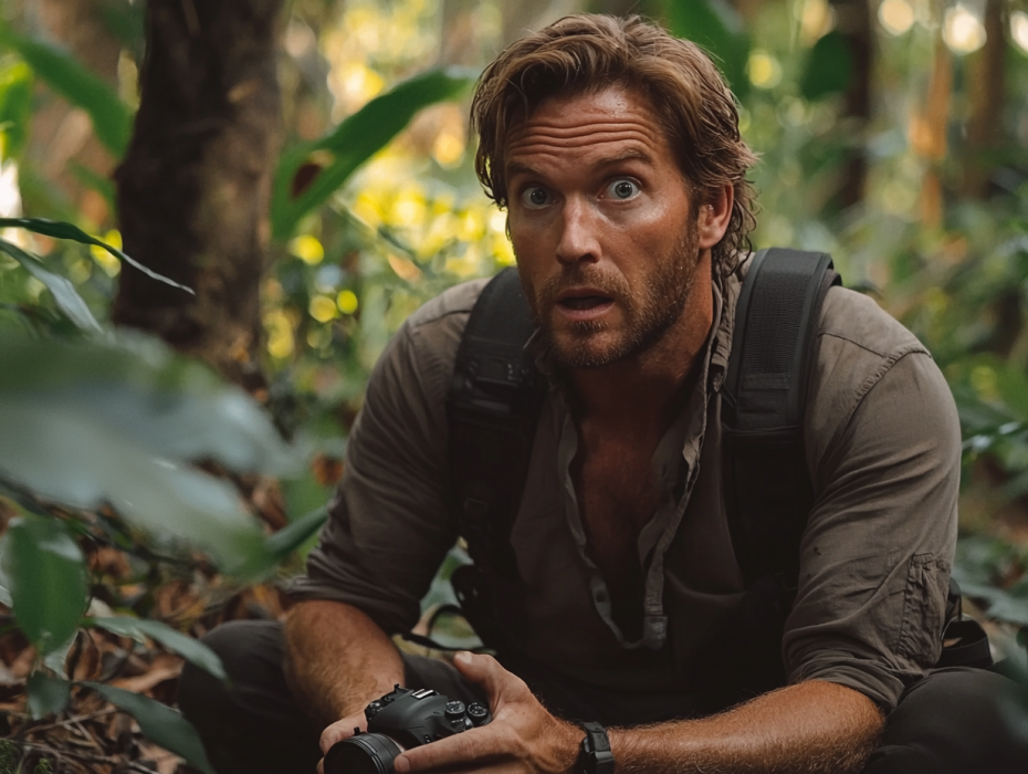 熱帯雨林の雰囲気は一変し、緊張と重圧が増し、まるで空気そのものが期待に満ちているかのようだった。ポールは緑豊かな森の奥深くへと歩を進め、来るべき事態に備えてカメラを構えた。鬱蒼と茂る緑がかすかにざわめき、彼を取り巻くサスペンスに拍車をかけた。