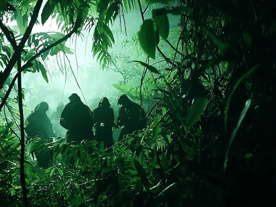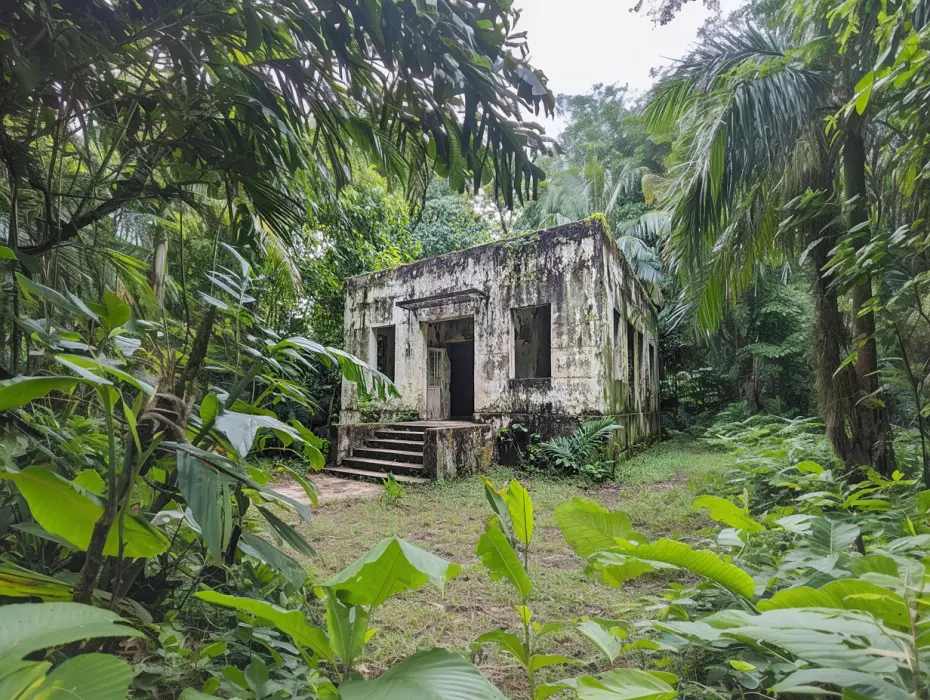 深呼吸をして、ガブリエルは拳を握りしめ、足を無理やり動かした。建物へ向かう一歩一歩が重く感じられ、ジャングルが彼を取り囲むように迫ってくると、厚く湿った空気が息苦しくなってきた。