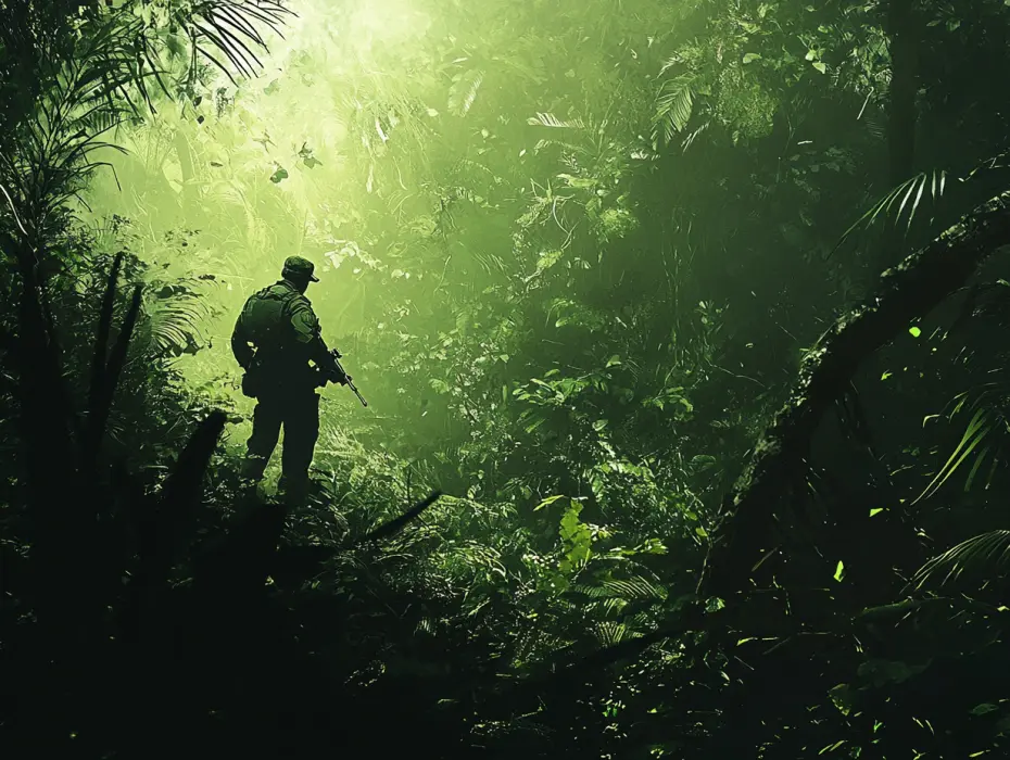 ジャングルは彼の周囲に迫り、密生した樹冠は厚みを増し、幽霊のような指が伸びてくるような不気味な影を落とした。空気はさらに冷たくなり、息苦しくなるような寒さで彼を包んだ。