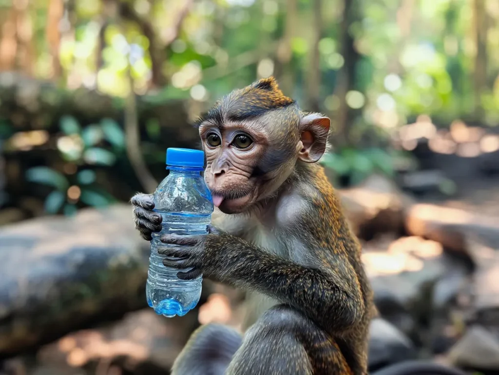 また別のサルは、無防備な観光客のバックパックから水のボトルを奪い取った。そのサルの器用さには感心させられた。軽快な指さばきで見事にキャップを外し、数口飲んでからボトルを放り投げて持ち主を困惑させたのだ。