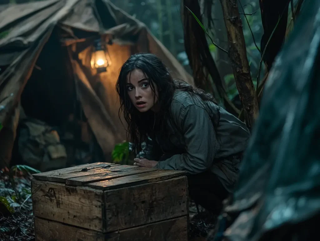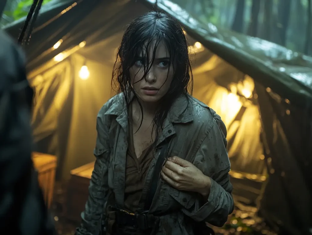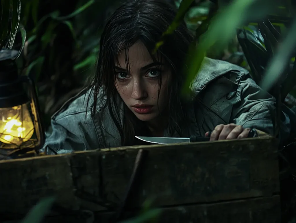 ナイフを持つ手が震え、今見つかればチャンスはないと思った。密猟者は立ち止まり、キャンプを見渡した。彼の視線は彼女のしゃがんだ姿の数センチ上を通り過ぎた。「何もいない」彼は独り言のように呟き、キャンプ前方でパートナーと合流するために背を向けた。