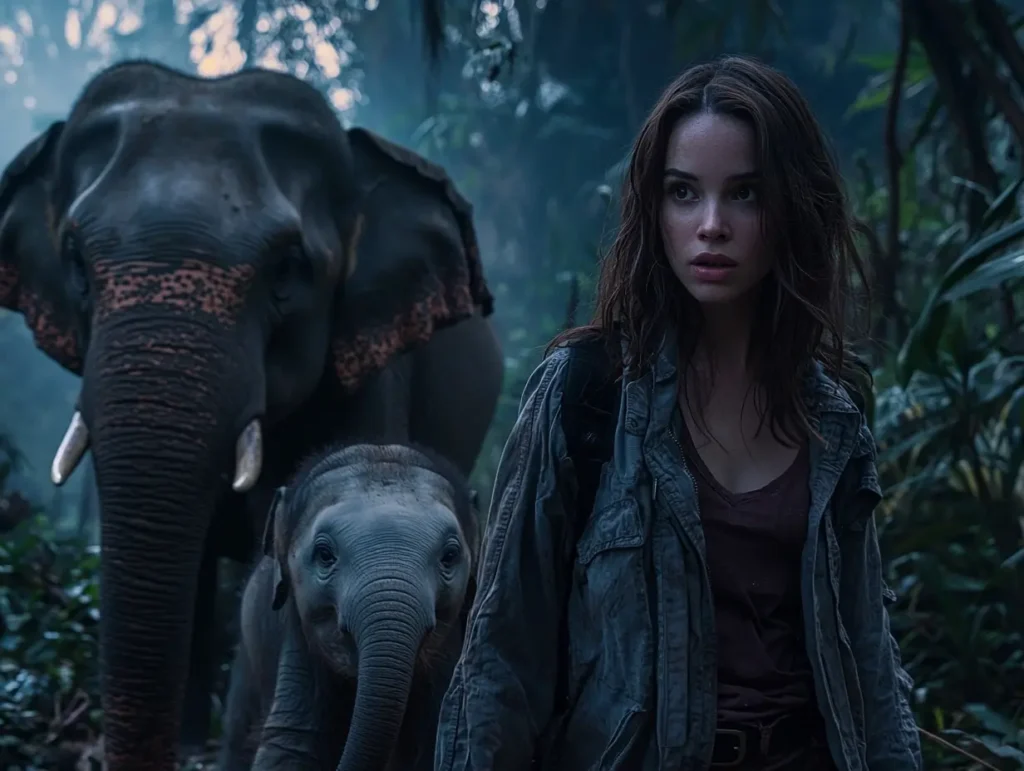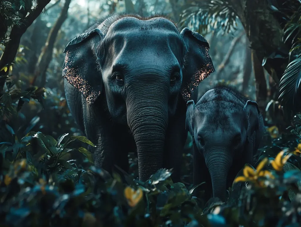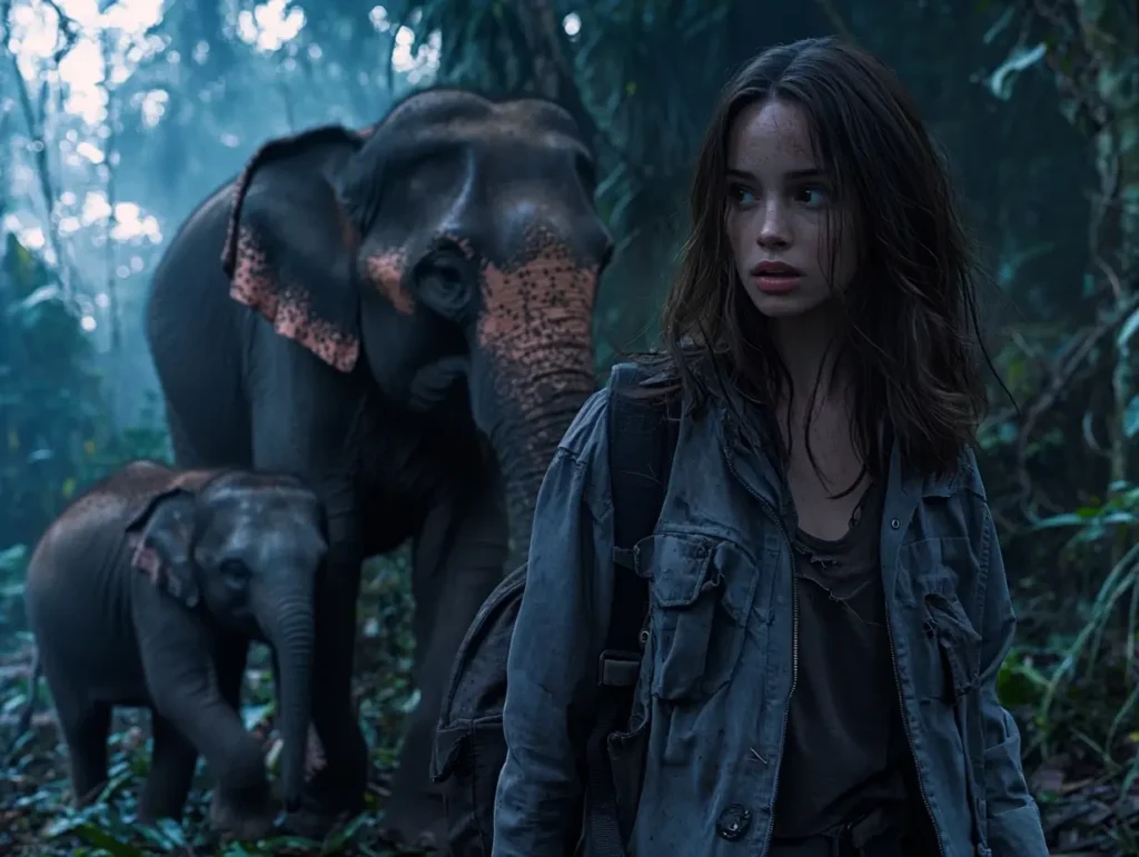 母象と子象の穏やかなリズムに誘われるように、彼女の心臓はゆっくりと動き始めた。彼女はちらりと母象を見上げ、その穏やかで保護的な存在に感謝した。ジャングルで生き延びるためには、これ以上の仲間はない。