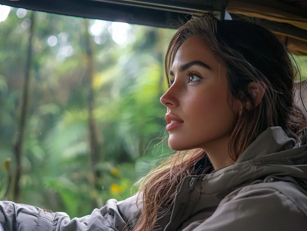 夜が明け、アマラが旅支度を整えると、木々に柔らかな琥珀色の光が差し込んだ。彼女が目印の集合場所に到着する頃には、すでに数人のツアー客が集まり、期待に胸を膨らませていた。近くには頑丈なジープが停まっており、ガイドは森の秘密を知り尽くしたような目をした物静かな男だった。